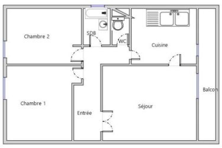 L'appartement comprend, une entrée, un salon avec balcon, une cuisine indépendante, deux chambres, une salle de bain , et un WC séparé