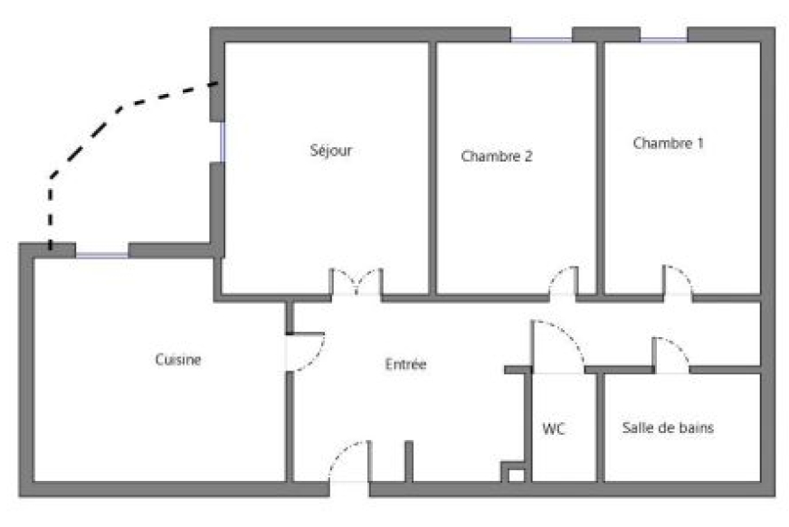 L'appartement comprend, une entrée, un salon avec balcon, une cuisine indépendante, deux chambres, une salle de douche, et un WC séparé