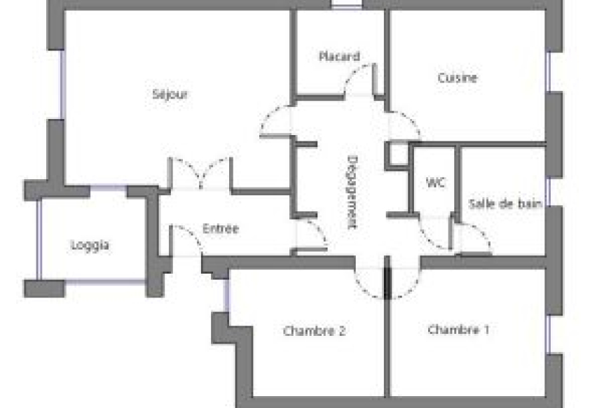 Appartement de type 3 De 73.08 m², au 1er étage, comprenant, une entrée, un salon avec loggia , un dégagement desservant , deux chambres, une cuisine séparé, une salle de bain, un WC séparé.